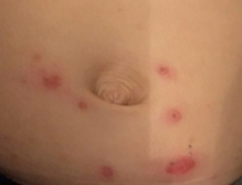 石鹸をよく泡立て、患部を優しく洗い、シャワーでしっかり洗い流して清潔に保ちます。 - 掻きむしり防止